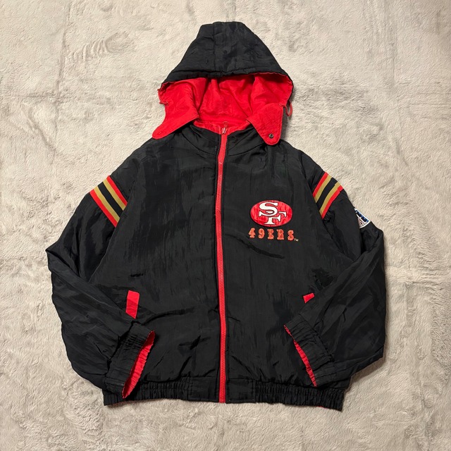 90s 49ERS ナイロンジャケット リバーシブル 刺繍 ブラック×レッド
