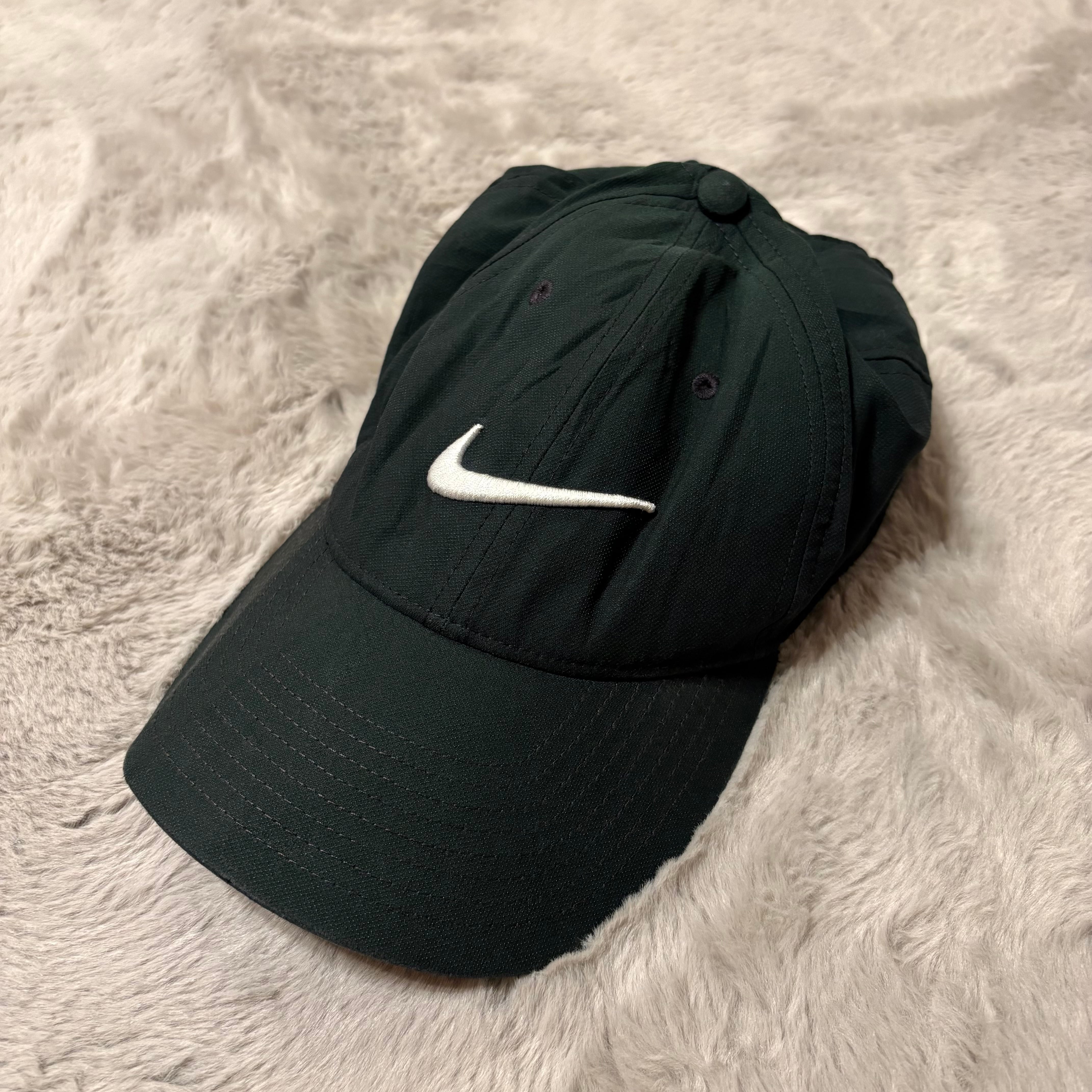 NIKE スポーツキャップ スウッシュ 刺繍ロゴ 深緑 /古着 hunky