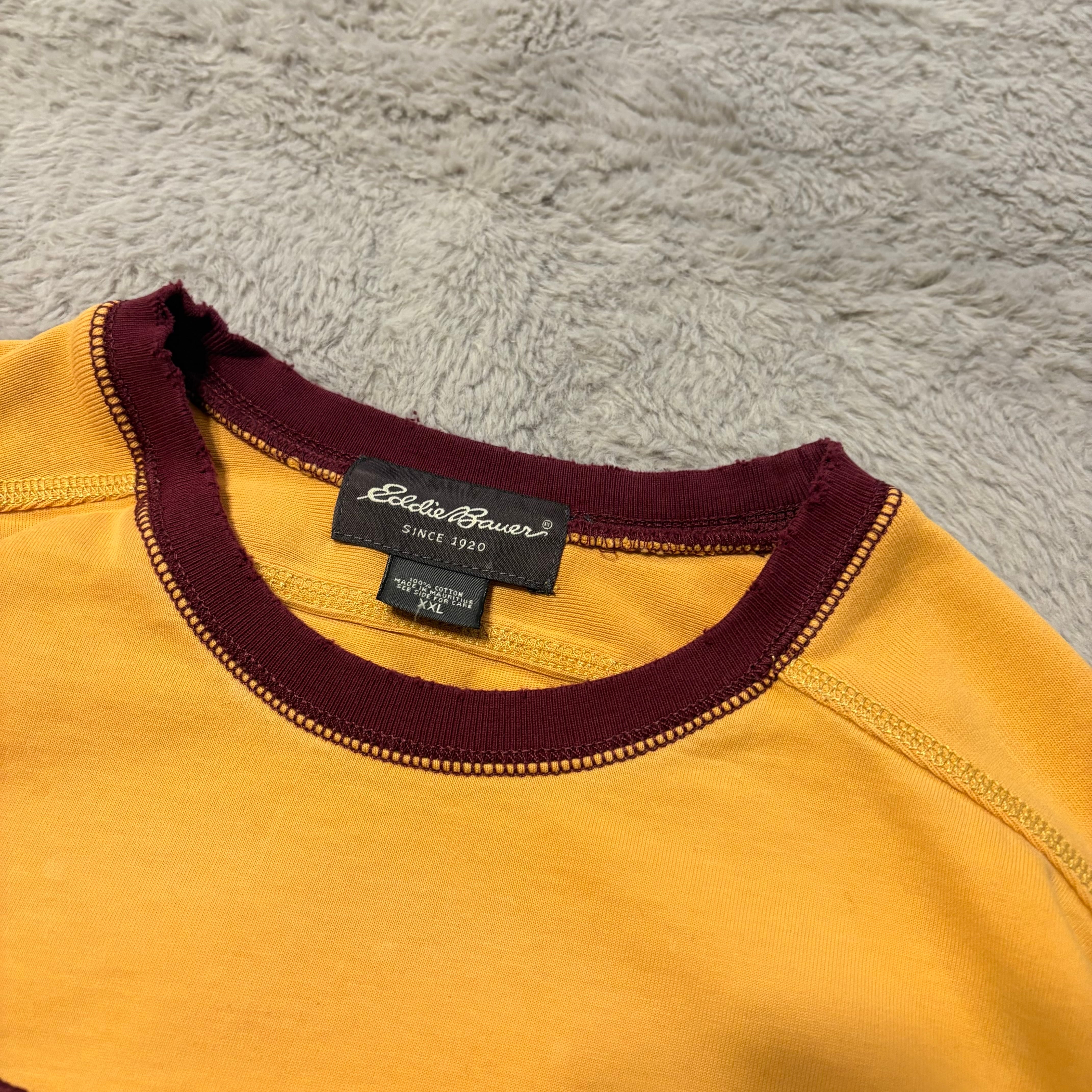 EDDIE BAUER ロンT ナンバリング リブライン マスタード XXLサイズ