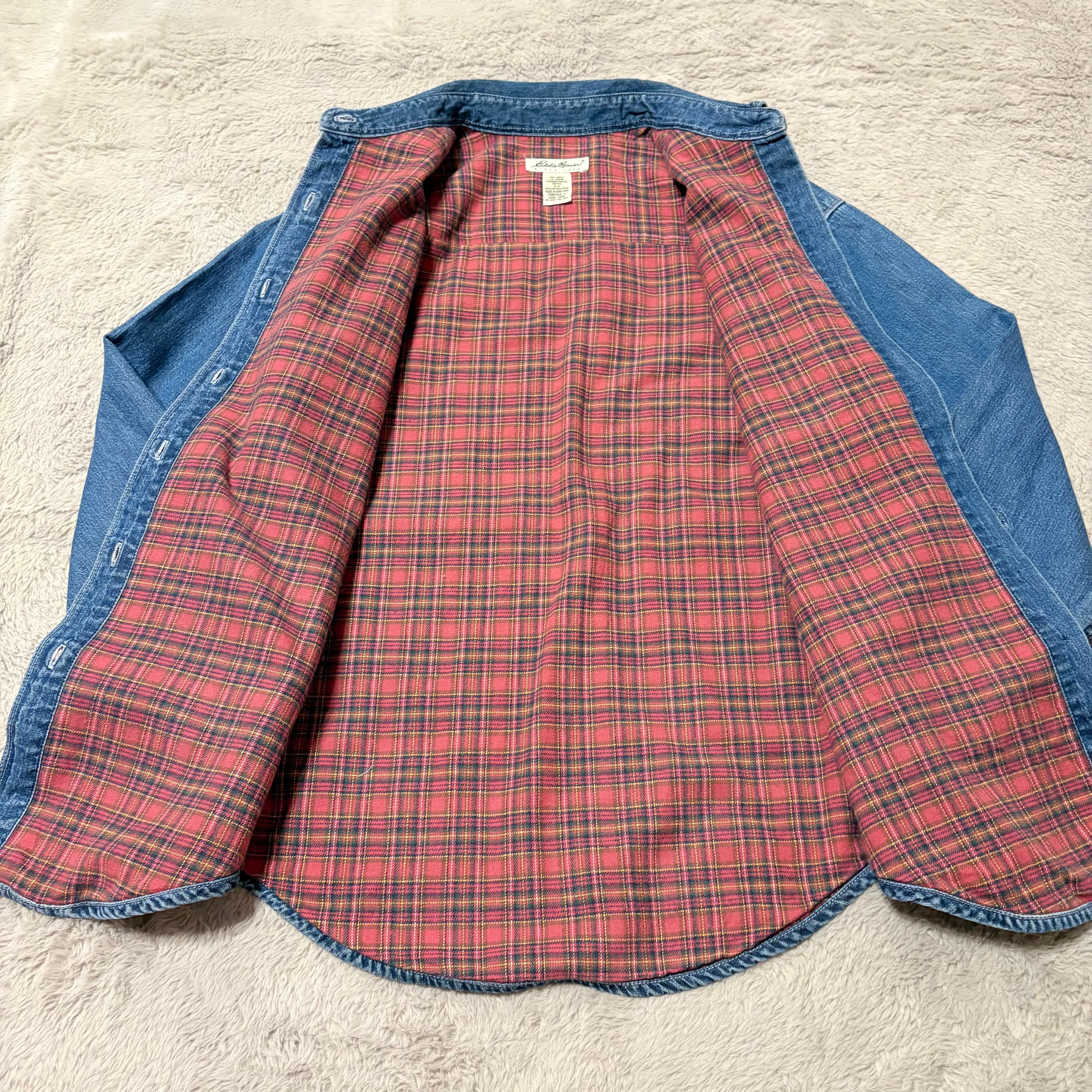 EddieBauer デニムシャツ 裏地ネル ブルー レディースMサイズ