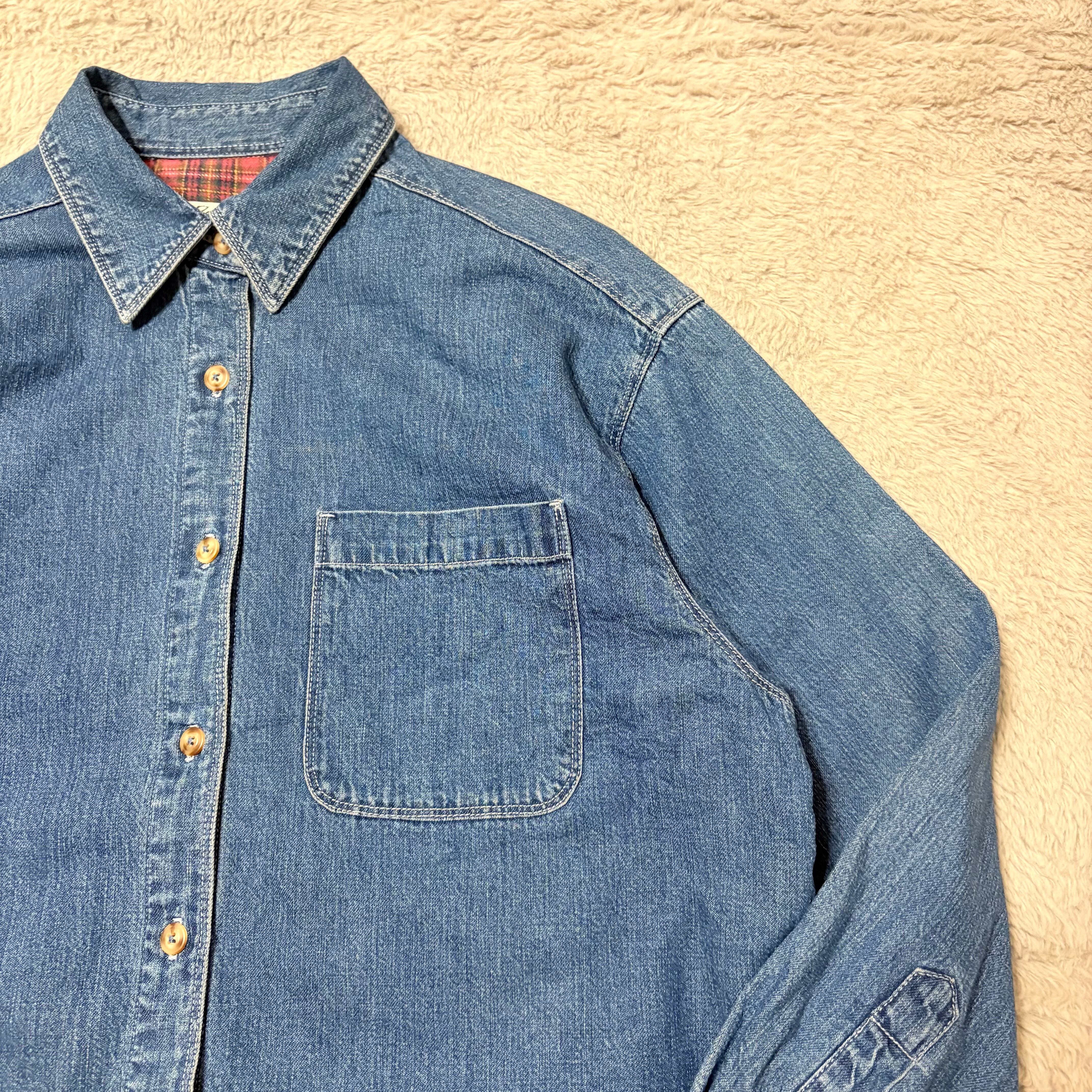 裏地がチェック柄のネル素材になったデニムシャツ。