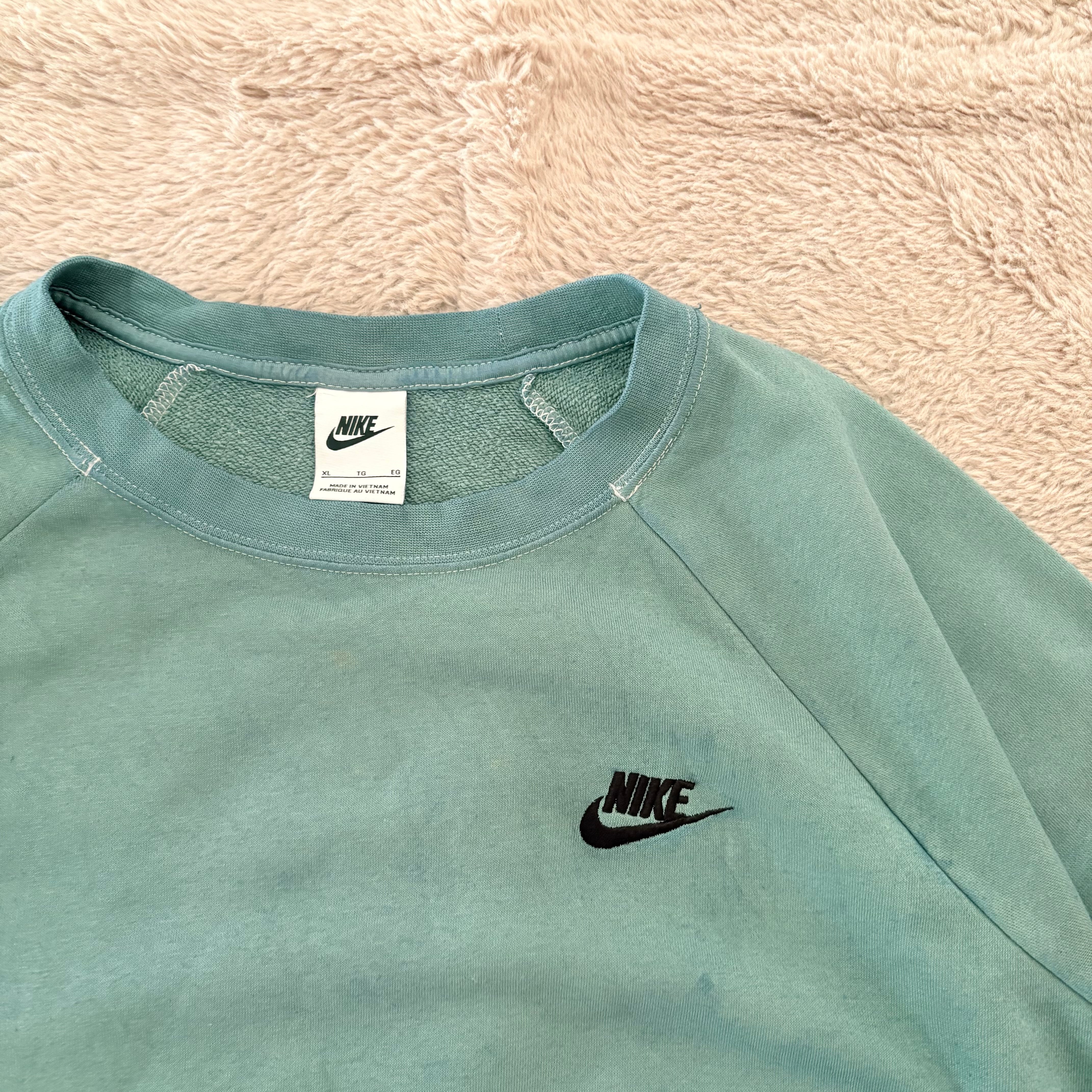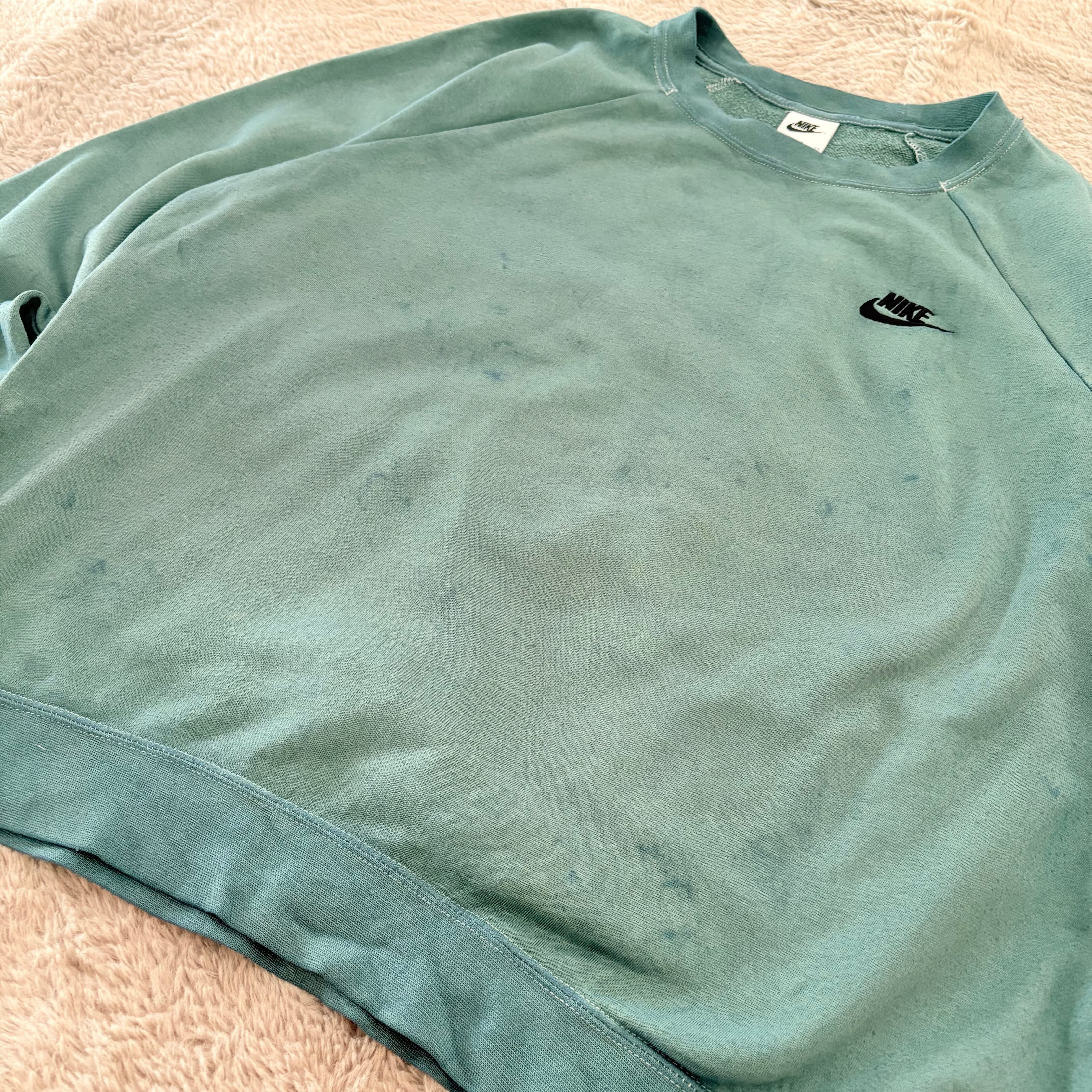 NIKE スウェット ワンポイント刺繍ロゴ 薄手生地 ラグラン グリーン XLサイズ