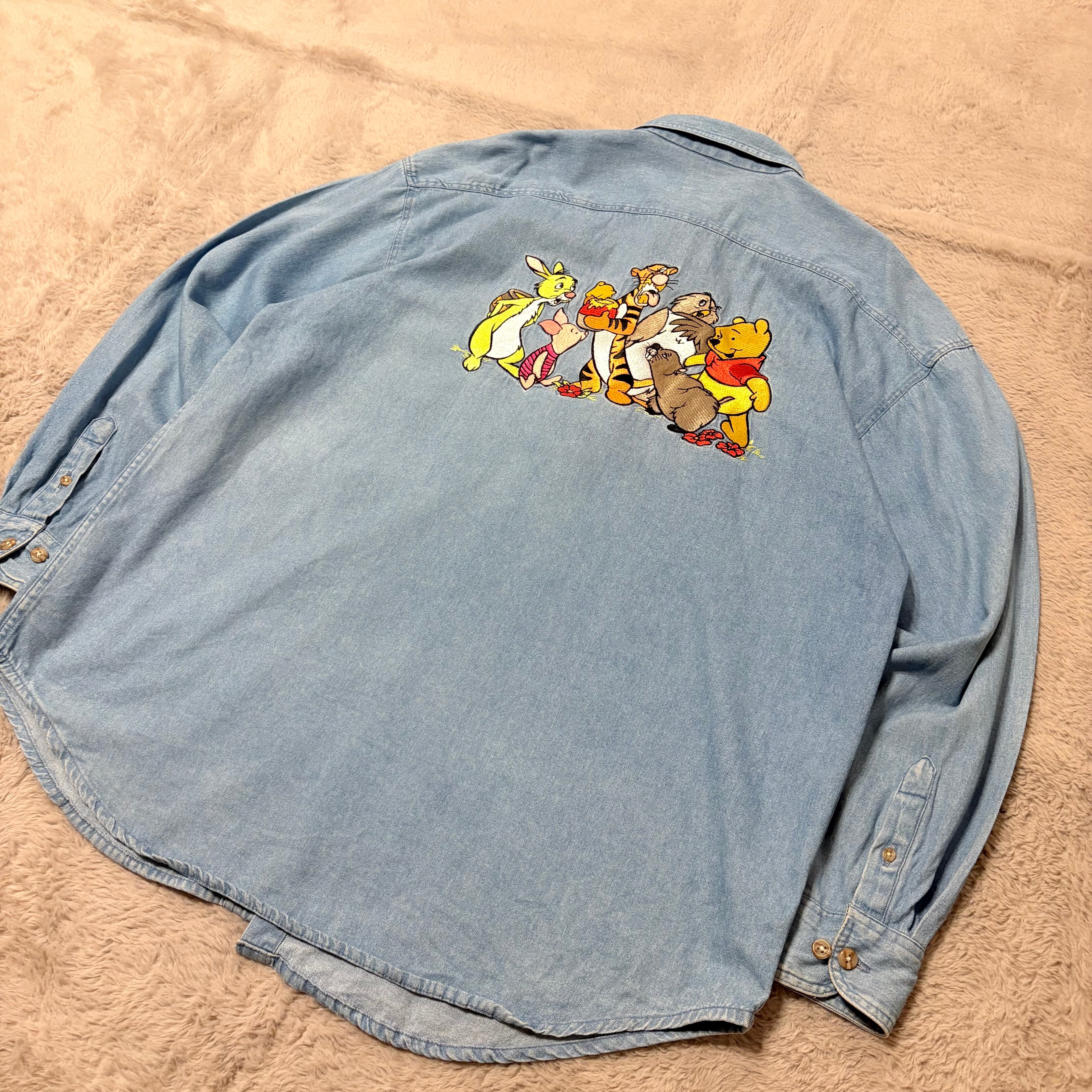 90s Mickey.inc デニムシャツ プーさん バック刺繍 ブルー XLサイズ