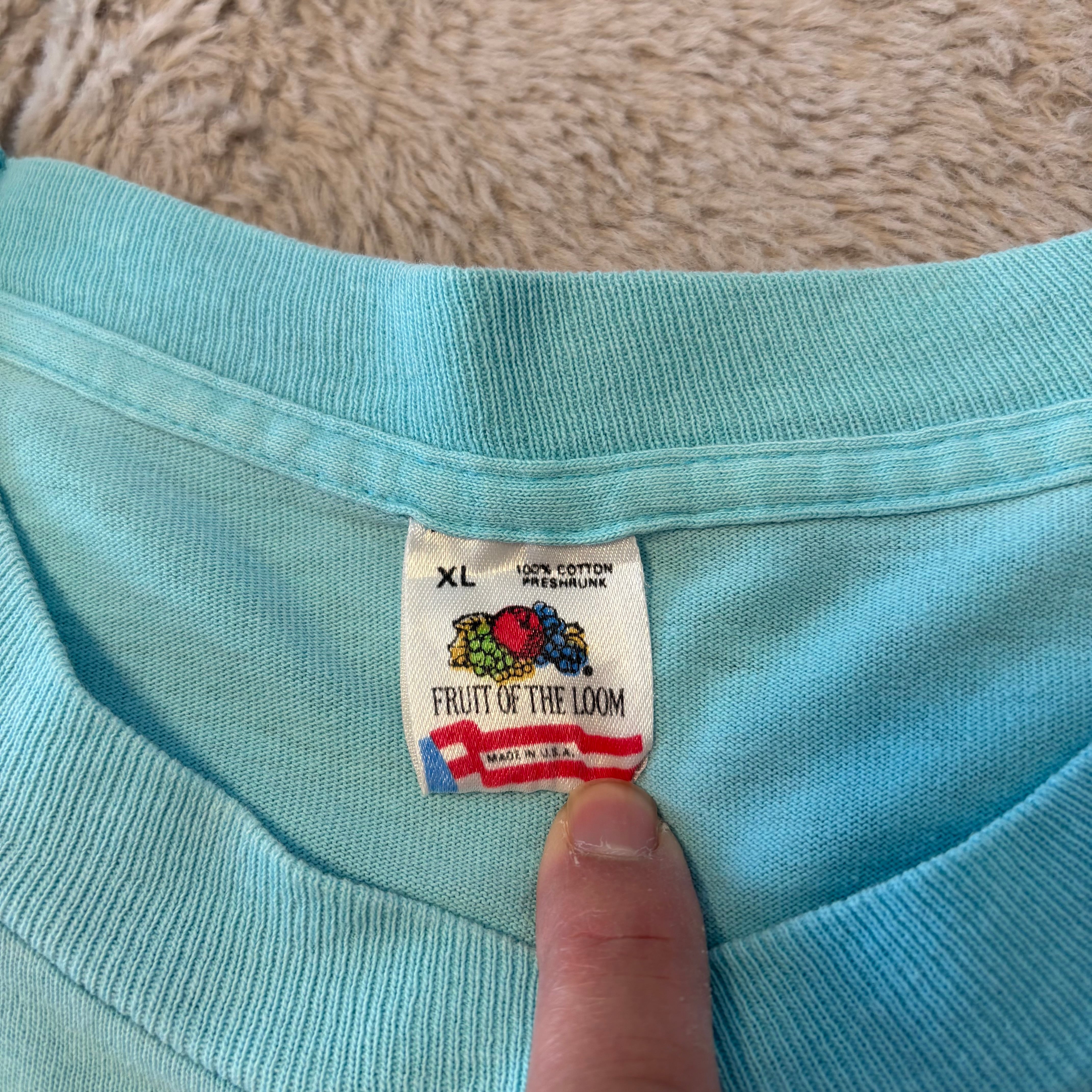 90s fRUIT OF THE LOOM USA製 イベントT シングルステッチ ティファニーブルー XLサイズ