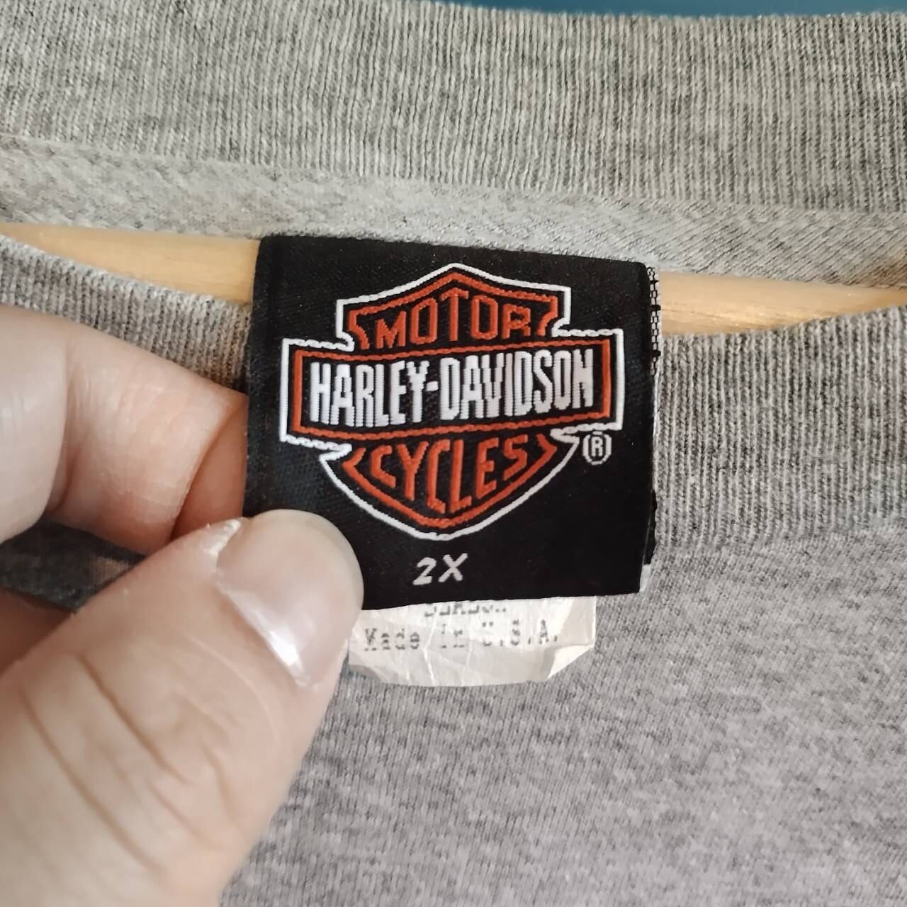 【ハーレーダビッドソン】半袖Tシャツ USA製 前後ビッグロゴ グレー 2Xサイズ